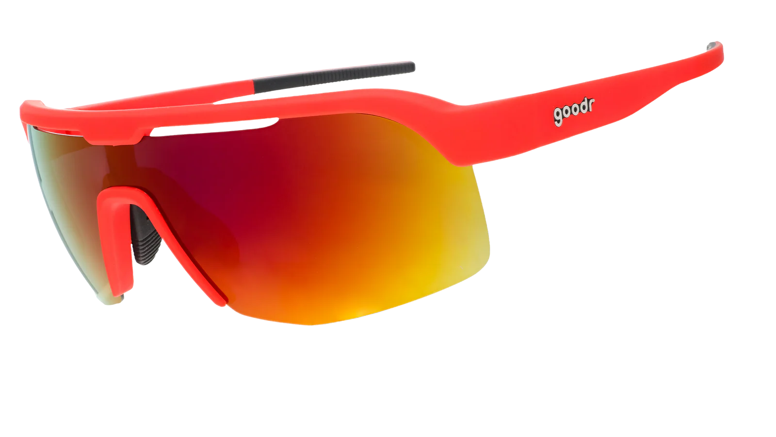 Residents of Dante's fiery inferno are doomed to suffer shin splints that burn like hell for all eternity. Don't worry, though. These red shield, half-rim frames w/ rose reflective lenses won't slip or bounce no matter how schweddy it is there.