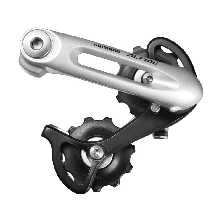 Perfect for SHIMANO ALFINE equipped bicycles, the double pulley chain tensioner can accommodate a front chainring difference of 16 teeth and sprockets sized 18 to 20 teeth.