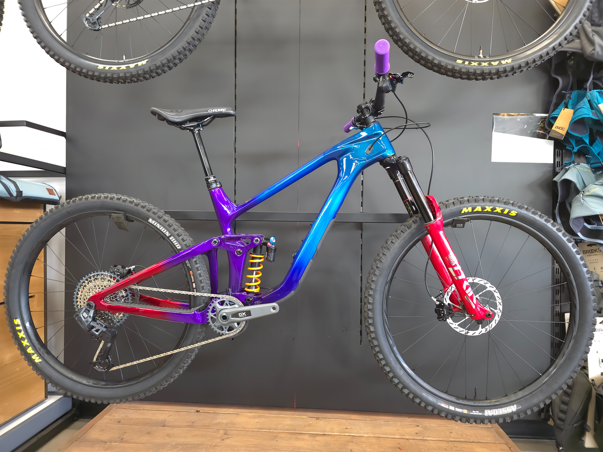 Advanced-grade composite front and rear triangles, 160mm Maestro suspension, flip chip, 12x148mm thru-axle, 27.5 or 29-inch rear wheel compatible, flip chip - Maestro 3, integrated downtube storage