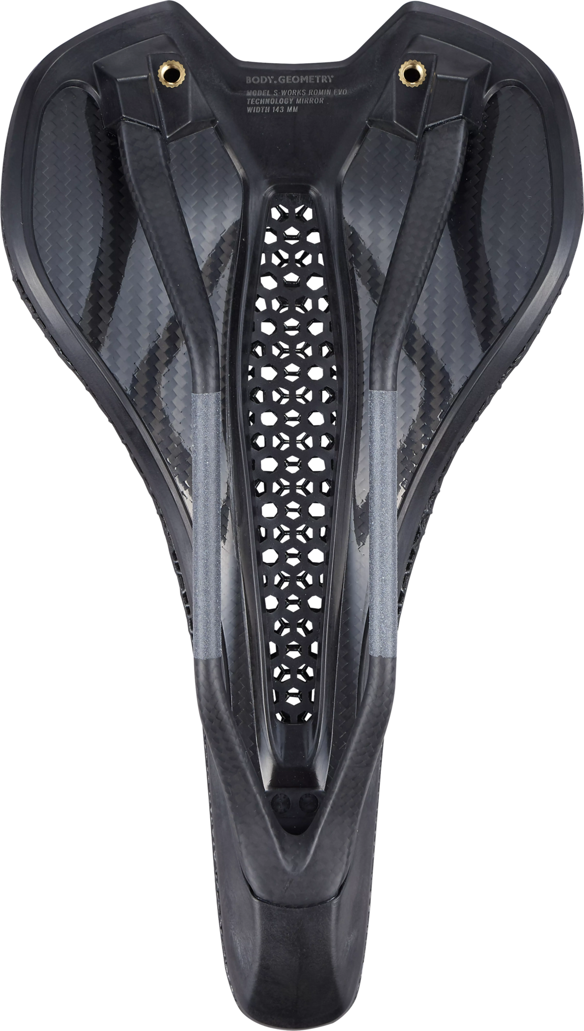 Our pro-favorite S-Works Romin EVO with Mirror saddle is designed to deliver exceptional comfort and ensure blood flow to soft tissue when riding in a low, aero position. By replacing foam with our Mirror technology, we’ve also reduced sit bone pressure up to 26%. We developed Mirror technology by 3D printing from a liquid polymer to perfectly reflect your anatomy. This revolutionary process creates a complex honeycomb structure that allows us to infinitely tune the material’s density in a way impossible with foam.
