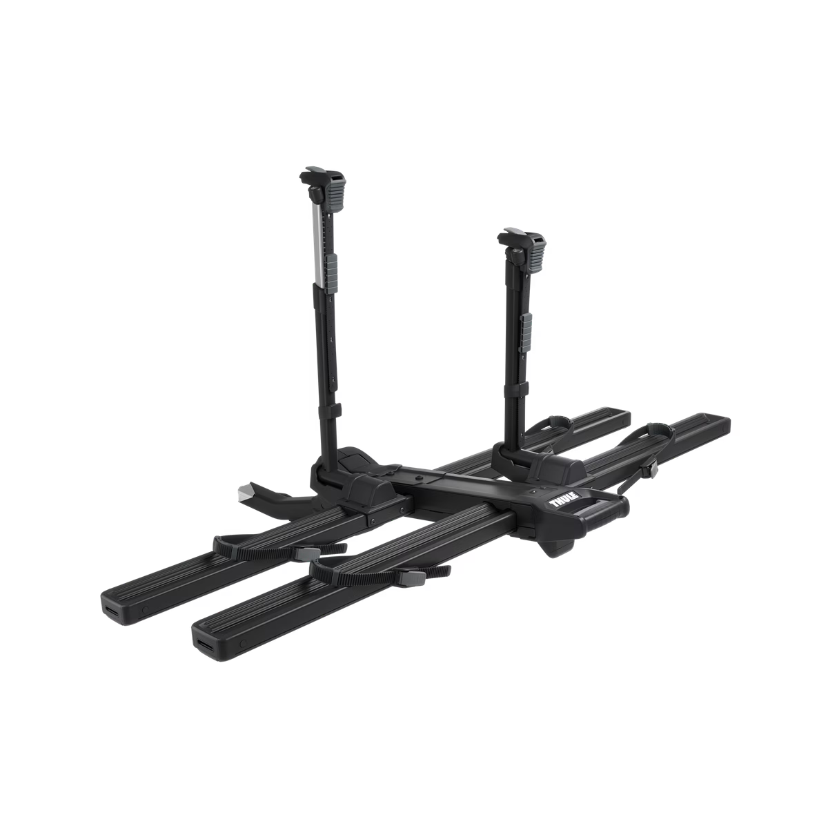 Thule Vero is a durable and versatile platform hitch bike rack designed to carry all types of bikes—including mountain, road, kids, and e-bikes, as well as fat tire and cargo bikes. Offering a high weight capacity of up to 80 lbs per bike, its innovative telescopic arms easily secure the bike for independent loading.